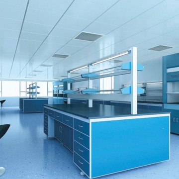 實(shí)驗(yàn)臺(tái)主要由臺(tái)面、臺(tái)下的支架和臨時(shí)儲(chǔ)藏柜組成,為方便操作,臺(tái)上可設(shè)置藥品架,臺(tái)的兩端可安裝水槽。臺(tái)面常用耐蝕貼面理化板、耐蝕實(shí)芯理化板、環(huán)氧樹脂板或高溫陶瓷板等制成。理想的臺(tái)面應(yīng)平整、不易碎裂、耐酸堿及溶劑腐蝕,耐熱,不易碰碎玻璃器皿等。